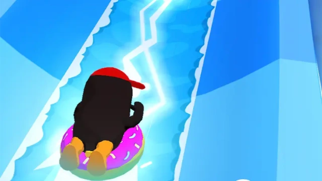 Reach the end of the water slide first, bumping other players along the way! In aquapark.io, players race down a vibrant water slide, aiming to reach the finish line before their competitors. Along the way, players can bump others off the slide to gain an advantage and have fun navigating the twists and turns of this colorful, sunny adventure. Players control their character as they race down a water slide, using strategic moves to bump other players off the slide and gain speed boosts. The objective is to be the first to reach the end of the slide while enjoying the dynamic and engaging race.