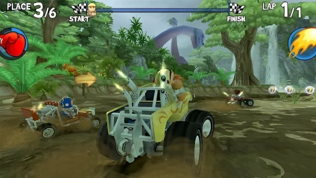 Drive into an action-packed, surprise-filled world of off-road kart racing mayhem! Race against a field of rival drivers, each with unique personalities and special abilities. Build a collection of crazy powerups, like Dodgeball Frenzy, Fireball, and Oil Slick. Unlock and upgrade a variety of cars, from dune buggies to monster trucks. Test your skills in 6 different game modes on 15 imaginative 3D race tracks, against a pack of tropical-loving rivals with a serious case of road rage! Fast, furious, fun and FREE, Beach Buggy Racing is a kart-racing island adventure for all ages. • • GAME FEATURES EXCITING KART-RACING ACTION Utilize your driving skills and a collection of creative powerups to fight your way to the finish line. It’s not just a great looking 3D racing game, it’s an epic battle with spectacular physics-based gameplay! COOL CARS TO CUSTOMIZE Use your winnings to collect and upgrade a garage full of unique cars, from monster trucks to muscle cars to lunar rovers! OVER 25 AMAZING POWERUPS Beach Buggy Racing crushes other kart racers with over 25 totally unique Powerups ... and more Powerups are coming! 15 SPECTACULAR RACE TRACKS Explore dinosaur-infested jungles, lava-spewing volcanoes, beautiful beaches, and mysterious swamps. Each unique race track is packed with hidden shortcuts and surprises. COLLECT A TEAM OF RACERS Recruit a team of drivers to play with, each with a unique special power like teleportation, flaming fire tracks, and confusion spells. GAME CENTER & iCLOUD Compete with your friends on Leaderboards, earn Achievements, back up your game and keep multiple devices in sync with your iCloud account. PLAY THE WAY YOU WANT Seamlessly switch between tilt steering, touch-screen, and MFi game controllers. Customize the 3D graphics settings to optimize your play experience. OPTIMIZED FOR METAL Full Metal optimization provides enhanced graphics, real time lighting and shadows, and super-smooth frame-rates on A7 and A8 devices (iOS 8+ only).