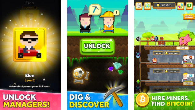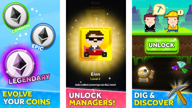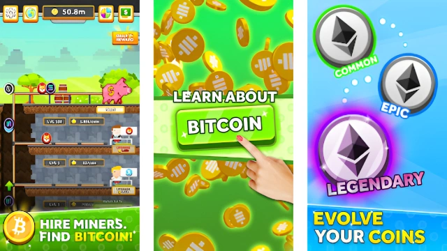 Become the ultimate bitcoin mining tycoon by tapping to mine dummy versions of popular crypto currencies in this fun idle clicker. Currently withdrawals are not support in Washington, Massachusetts, Florida, Hawaii, or New York due to local laws. Develop the projects and sell your portfolio for better GPUs (prestige) in this addictive tycoon game! Evolve your coins, collect Airdrops and invest in research to earn as much $$ as possible! Watch an old farm change into a super Bitcoin mining farm! Sell your portfolio and reinvest it to become the next Bitcoin Billionaire! This is an idler, so your coins are always earning you $$$, even if you're not in the game! FEATURES: • Introducing a new type of idle, clicker or tycoon game • Start with a pickaxe and turn an old farm into a lucrative crypto mining company • Unlock 10 unique cryptocurrencies! Including Solana (SOL), Ripple (XRP), Shiba Inc (SHIB), Dogecoin (DOGE), Sand (SAND) and many more • Visit new worlds and discover their secrets • Open daily Airdrops and discover what's inside • Constantly earn, even if you are offline • No Internet Connection required to play • LIVE CHAT directly to the developers in the Fumb Games Discord