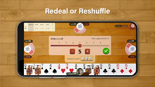 Play Calllbreak card game offline and online with friends. Who doesn't love a fun and relaxing card game that's easy to learn and can also be enjoyed with a group of family and friends? Look no further than Callbreak.com - Card game, a classic and popular card game with online multiplayer feature to the App Store. Our new features: - Reshuffle and Redeal: Reshuffle your cards or Redeal the same round with our new feature. Your leaderboard rank stays safe. - Chat and Emoji About Callbreak: Callbreak or Lakadi is a popular skill-based card game in South Asia, especially in India and Nepal. The objective of the game is to accurately predict the number of tricks (or hands) you will take in each round. It is played with a 52-card deck between 4 players with 13 cards each. In the standard version, there are five rounds, including 13 tricks in one round. In this tash game, spades are the trump cards. The player with the highest points after five rounds will win. In a nutshell: one deck, four-player, trick-based strategy card game with no partnership. Whether you're a pro or new to the game, our user-friendly interface ensures everyone can jump right into the action. With regular updates, fair gameplay, Callbreak is loved by card game enthusiasts seeking hours of endless fun. Why Play Our Callbreak? - Simple and elegant design - Smooth gameplay for an uninterrupted experience. - Our players can't get enough of the Super 8 bid challenge, and we're sure you'll love it too! It adds an electrifying twist that keeps you entertained for hours. How to play Callbreak? If you're new to this card game, we've got you covered with our video tutorials within our game. Features: *Multiplayer Mode: Compete against players from around the world in real-time multiplayer matches. *Private Table: Create a private table and invite your friends to play together. Enjoy Callbreak with your close group. *Play Callbreak online and offline: Play with AI opponents that provide a realistic card-playing experience offline. *Leaderboards: Do you have what it takes to be the best Callbreak player in the world? Show off your skills and climb the global leaderboards. *Statistics and Progress Tracking: Track your performance with detailed statistics. Analyze your gameplay, learn from your mistakes, and become a more skilled player. *Stunning Visuals Immerse yourself in the visually appealing world of Callbreak. Choose from a variety of assorted backgrounds and enjoy the game.