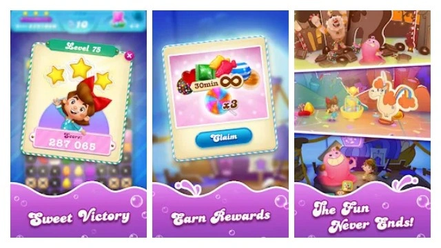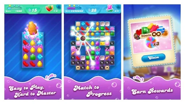 Download Candy Crush Soda Saga now! From the makers of the legendary Candy Crush Saga comes Candy Crush Soda Saga! Unique candies, more divine matching combinations and challenging game modes brimming with purple soda and fun! This mouth-watering puzzle adventure will instantly quench your thirst for fun. Join Kimmy on her juicy journey to find Tiffi, by switching and matching your way through new dimensions of magical gameplay. Take on this Sodalicious Saga alone or play with friends to see who can get the highest score! Monthly season updates bring quests and exciting gameplay for you to explore! Complete quests to progress through the Season Pass while earning rewards and boosters to help you on your Saga. Show your competitive side in the Episode Race! Compete against other players to see who can complete levels the fastest and progress the quickest. Or work as a team in the 4 in a Row game mode where players work together for Sodalicious rewards! Candy Crush Soda Saga Features: *Over 10000 match 3 Sodalicious levels *Mouth-watering graphics, with 3D characters and an ever changing environment *Monthly Seasons all year long, filled with challenging quests and a reward-fueled Season Pass *Game modes bubbling with fun and unique candy: Soda – Switch the bottles and match candies to release purple soda and save the Candy Bears Frosting – Match candy to smash the ice and set the Candy Bears free Honeycomb – Match candies next to honeycomb to release the trapped Candy Bears Jam – Spread the jam across the board *Unique candies and scrumptious new matching combinations: Match 4 candies in a square to make a Swedish Fish! Match 7 candies for the all new Coloring Candy! *Explore juicy worlds and levels with even more characters! *Team up for tasty rewards in the 4 in a Row game mode *Complete levels in the fastest time for sweet prizes in the Episode Race! *Easy and fun to play, yet challenging to fully master *Players that Facebook Connect will have access to leaderboards where you can challenge your friends and compare your highscores! *Easily sync the game between devices to unlock the games full features when connected to the internet