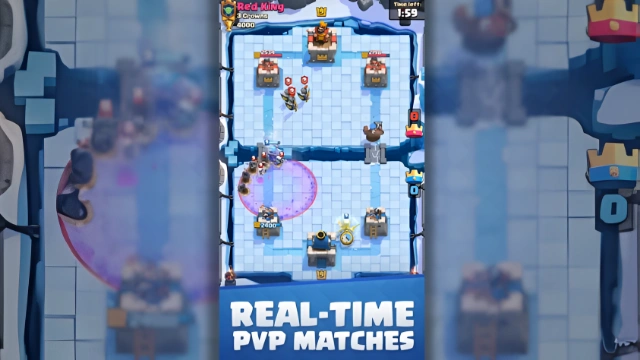 Enter the Arena! Build your Battle Deck and outsmart the enemy in fast real-time battles. From the creators of CLASH OF CLANS comes a real-time multiplayer battle game starring your favourite Clash characters and more. Start battling against players from around the world! BECOME A MASTER OF STRATEGY AND DECK BUILDING Choose unique Cards to your Battle Deck and head to the Arena for Battle! Place your Cards right and knock down the enemy King and Princesses from their Towers in a strategic and fast-paced match. COLLECT AND UPGRADE 100+ CARDS Hog Rider! Collect and upgrade 100+ Cards featuring the Clash of Clans troops, spells and defences you know and love and many others. Win battles and progress to new Arenas to unlock powerful new Cards to your collection! BATTLE YOUR WAY TO THE TOP Battle your way to the League and Global Tournaments to match against the best players in the world. Compete for glory and rewards! SEASONAL EVENTS Unlock new Seasonal items like Tower Skins, Emotes and powerful Magic Items with the Season Pass and participate in fun Challenges that put your skills to the test! JOIN A CLAN AND GO TO WAR Join or form a Clan with other players to share Cards and battle in Clan Wars for BIG rewards! See you in the Arena! PLEASE NOTE! Clash Royale is free to download and play, however, some game items can also be purchased for real money. If you don't want to use this feature, please disable in-app purchases in your device's settings. Also, under our Terms of Service and Privacy Policy, you must be at least 13 years of age to play or download Clash Royale.