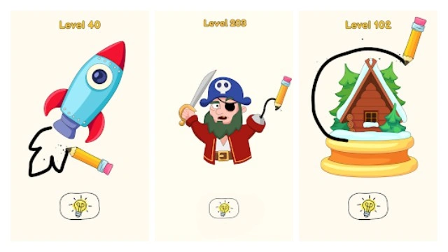 ► SOLVE DRAWING PUZZLE AND BECOME AN ARTIST! Have you ever wanted a game to challenge your brain and your talent for drawing? Solve puzzles by using your powers of logic and lateral thinking as you work your way through a huge series of cute drawings that all have something a little bit wrong with them — and it’s up to you to work it out! Use your finger to draw and outline the shapes of the parts that the drawings need, and then watch the game color and fill in the rest to complete the picture and take you on to the next challenge. Once you work out the puzzles you will see that even the funniest drawings are entirely based on logic and lateral thinking, and you will be kicking yourself for even looking at the hints! Some of the results might surprise you and make you really want to play more! ► INNOVATIVE FEATURES THAT MAKE THIS GAME ONE OF A KIND • Use your own finger to complete drawings on your screen and let the game fill in the rest of the picture • A game that is an engaging and fun for your skill at solving puzzles and lateral thinking • Dozens of beautiful drawings to complete and figure out and keep your brain engaged for hours • Uniquely refreshing and engaging gameplay which you will be thinking about all day and coming back for more • A helpful hint system that won’t leave you in a lurch and let you get on with the game whenever you get stuck • Lovely music written especially for the game, which is relaxing and catchy at the same time and takes you away from the worries of everyday life • Your progress is saved after every drawing, play the game for as little or as long as you like • A difficulty which is just right, as it grows and draws you in until you’re solving puzzles and using your powers of logic like a pro • You don’t have to be a great artist, but it helps! ► A FUN AND RELAXING CHALLENGE If there is a puzzle that you need a little help with figuring out, there is a helpful hint system that will point your artistic talents in the right direction! When you play this game, there is a relaxing balance of difficulty and enjoyment where you will feel that you have faced a challenge for your brain but never got annoyed or frustrated. The gaming sessions can be as long or as short as you want, from solving a single drawing to several hours, as they keep on coming and your progress is always saved! You can also always play the game together with your friends and family, as your screen doesn’t mind whose finger it is! Download this colorful and fun game of artistic riddles today and bring out your inner artist!