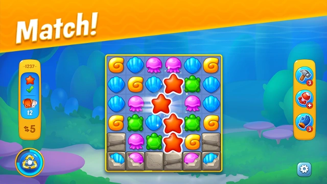 "Never Fishdomed before? Take a deep breath and dive into an underwater world of match-3 fun with Fishdom, an all-new free game! Try challenging and fun match-3 gameplay with unique puzzles as you decorate aquariums to create cozy homes for lovely talking fish. Feed them, play with them, and watch them interact with each other. Hey, your finned friends are waiting for you, so dive in now and enjoy this amazing underwater adventure! Features: ● Unique gameplay: swap and match pieces, design and decorate aquariums, play with and take care of fish—all in one puzzle game! ● Play hundreds of challenging and fun match-3 levels ● Compete with other players to develop your aquarium even faster ● Explore an exciting aquatic world with funny talking 3D fish that each have their own personality ● Liven up fish tanks with breathtaking underwater decor ● Grab your scuba mask and enjoy amazing aquarium graphics ● It’s a blast for everyone: share your Fishdom mania with your Facebook friends! ● No Wi-Fi or internet connection required to play Please note that Fishdom is free to play, though some in-game items can also be purchased for real money."