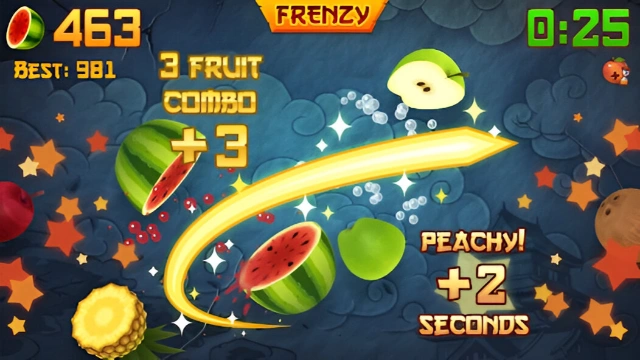Slice fruit, don’t slice bombs – that’s all you need to know to get started with addictive Fruit Ninja action! No matter how you like to play, the free version of the game is packed with features to satisfy your fruit-destroying appetite. Challenge yourself and see how long you can last in Classic mode, set a high score in Arcade mode or simply practise your fruit-slicing skills in Zen mode. A wide range of blades and dojos are at your disposal to help you cut your way to the top. Want more fun? Take a break and experience a new way to slice your favourite fruit with minigames, or test your mastery of the game and win prizes in the daily Challenge event. Go head-to-head and show off your skills as the ultimate ninja against your friends with leaderboards and local multiplayer. Up for a real challenge? Play Event mode and do battle against other ninjas for the chance to win unique blades and dojos. That’s not all though - give yourself the edge by logging in every day and be rewarded with daily prizes, including rare blades and dojos that you can use in other game modes! There has never been a better time to play Fruit Ninja, so unsheathe your sword and get ready for an addictive, action-packed gaming experience!