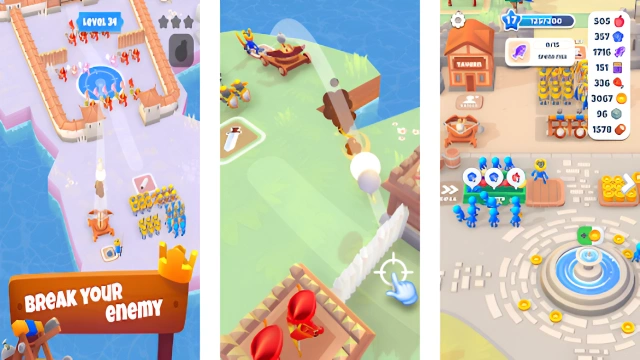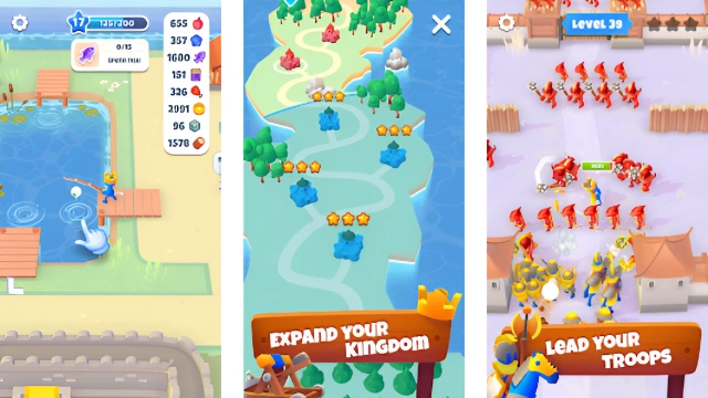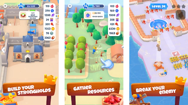 ► ARE YOU A FARMER OR A FIGHTER? In this fun new idle role-playing game, you’re both, with sidelines in mining, crafting, construction and management too. In fact, you’re a king, with a kingdom to protect, expand and develop, and if you want to succeed there’s a lot of work ahead of you. Start with just a small squad of swordsmen and a few berry trees, then get working to build a city, feed your people, raid enemy castles for resources and experience, expand your army and turn your tiny village into a flourishing and fearsome empire. ► ARE YOU WORTHY OF THE CROWN? • Turn your swords to plowshares: Start the game farming berries, sell them at market to feed your hungry people and use the coins you make to invest in the development of your kingdom and your wars of conquest. • …and your plowshares into swords: Spend the profits you make from crafting in this all-action RPG on expanding and upgrading your army, with five different types of soldier to recruit and improve. Turn your small band of raiders into a mighty horde of fiercely armed knights and archers, ready to conquer the known world. • Head for the longboats: Time management and resource mining aren’t enough: a great king has to prove themselves in battle. So, once you’ve taken care of your subjects’ basic needs, earned coins and upgraded your army, sail off to war, raiding over 90 enemy towns and castles for plunder and XP. • The builder king: Equip your town with new houses and facilities. The game has over a dozen different types of resources for you to craft into over 150 different new buildings and industries, from warehouses to taverns to luxurious palaces, that will also bring you idle profits when you’re out of the game. • By royal command: Of course, a king needs soldiers, but you’ll also need a whole host of other workers to keep your kingdom and your idle income ticking over. Hire and upgrade farmers, woodcutters, miners and more to really make your craft empire flourish. • Go ballista: Start every battle with a bang by using the ballista to hit the enemy where it hurts. Upgrade this powerful weapon to get access to ten increasingly destructive types of projectiles so you can really show the enemy who’s king of the castle!