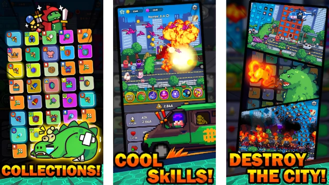 Ready to destory the City?!!! Play as a giant monster & Cause Colossal Carnage in this ""Rampage"" Inspired idle Game! Your quest in this online RPG is to lead your clan into an epic war, level up, and grow in order to rule the earth! Begin your adventure as a baby dinosaur, battle against other top Titan and become the legendary monster on earth! ""Legends of Monster: Idle RPG"" is a role playing game with both arena and online idle RPG game modes. The auto-battle system with idle clicker gameplay enables you to continuously earn more coins for upgrading your monster’s attack, HP, Damage, Recovery, Speed atrributes. The battle doesn’t stop when you log off and you can get rewards even offline! GROW&TRAIN a powerful legion without all the grinding! 【GAME FEATURES】 *** RPG Adventure Battles *** ‒ Travel all over the world and destroy cities! Smash every warrior that you encounter! ‒ Avoid or destroy the Human & Military forces & Bosses that are out to get you, and continue on your never-ending rampage! ‒ Fight in PvP battle and arena, Challenge other Titan in real-time duels. ‒ Nostalgic pixel art style brings you back to the game played in childhood *** RPG Progression & Strategy*** ‒ Equip your monsters and strategize unbeatable lineups to defense&overcome your enemies in battle. ‒ Collect & Summon over 50 beasts in three factions, like dinosaur, slime, gorilla....Each of them has a unique talent and combination of skills ‒ Train your legion with the sword, armor, and evolve them from ordinary, rare, epic, legend to myth. ‒ Customize your skills & attributes whatever you like. *** RICH GAMEPLAY*** ‒ Progress through the campaign and fight the boss to get extra bonus& rare resources. ‒ Explore the mines to get more gems&coins& relics & props ‒ Battle other players in the PVP Arena mode and climb the Leader board for the best rewards. ‒ Tower climbing system to challenge bosses of all levels and acquire rare resources. *** Auto-Battle System *** ‒ Set your lineup of dinosaurs before you’re away, and they will keep fighting when you are offline! ‒ Collect idle rewards and resources without spending too much time every day ‒ ""Tap game mechanics"" let you level up combat power with just a touch of the screen in this idle clicker game. If you are a super fan of idle clicker games, arcade games, cultivation& level-up games, action RPG games, and role-playing games, then don’t miss this ""Legends of Monster: Idle RPG""- the most fun game perfect for Busy Bees. Become a ganit Kaiju and unleash chaos now!