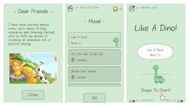 Simple, fun and clean! Like A Dino! Please note, the game information and data could be deleted and not be restored if you delete the application. Game information and data cannot be transferred to other devices. Find me on any of my social media (usually @super_toki, unless it’s been taken)