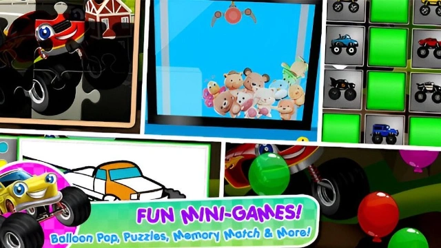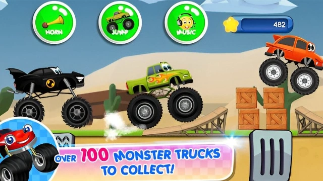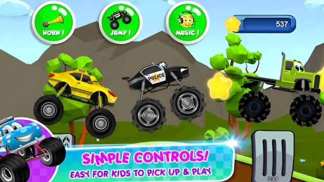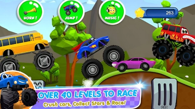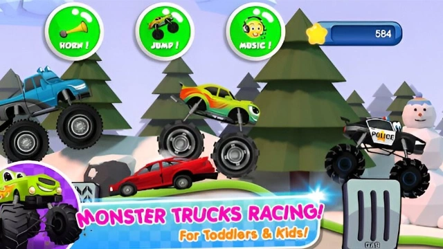 If your kids love all things monster trucks, Then they will love this game! Monster Trucks racing game for young kids and toddlers! Designed for young Children and toddlers between ages 2 to 8 years old, Simple controls to drive the monster trucks along the course. the truck never flips ensuring your child always gets to the finish line! Race against other trucks, Which slow down when they are ahead, to give your child the best chance of winning each race! Fun big buttons to Jump, Beep the horn and change the music track for lots of fun sounds. Crush the cars along the course with the monster machines, Collect stars, Fireworks and balloon popping are at the end of each level to give more excitement to the kids playing. There is 4 mini games included. Balloon Pop Memory Cards Puzzles Coloring pages With over 100 cool looking monster trucks across 42 levels to blaze across, will create hours of fun for your toddlers. With more monster trucks always being added! Collect them all! Monster Trucks Kids Game helps your child understand the educational mechanics of using mobile and tablet devices. with puzzles, memory card and heaps of fun racing action. Features: * 100's of Monster Trucks to choose from * 42 Levels to play * Fun Cartoon HD graphics * 5 different kids music sound tracks for the child to switch between. * Cute Monster trucks, engines, horns + much more vibrant sounds * Balloon pop game & Fireworks at the end of each race. * Mini Games such as Puzzles, Coloring pages, Memory Cards & Balloon Pop + much more.