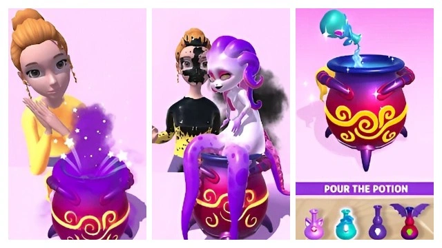 Did you ever dream to do MAGIC? Show your skills in this wizard game full of mystery where you craft magic pets, do your magic tricks, use some alchemy and become the most powerful wizard in the universe. The whole game is all about DIY magic tricks Make some potions and spells. Love potion Happy potion Rainbow magic Become invisible Full Body-Bind curse In Mystical mixing you have a ton of different cauldrons where you craft your magic pets. Use the pot to add mystery ingredients, stir it, tap it with the wand and boom! You have a new magic pets. Mystical mixing is one of those games where you put your imagination in real life. Become the best witch or wizard in the mystical forest where you can clawee your magic pets to discover new spells, build your village, find the hidden gems, portals, new magical creatures and so much more. Use the portal to go to the frozen forest where things are becoming even more mystical. Use the spell book to see the recipes for creating DIY magic pets. There are more than 300 magic pets. All unique with their own abilities. They can fly, sing, cry, laugh, build, protect. They will become best friends with the witch or wizard or become their nemesis. You can also merge the creatures to make them to be even more magical and beautiful.