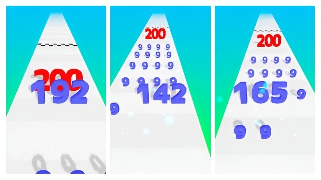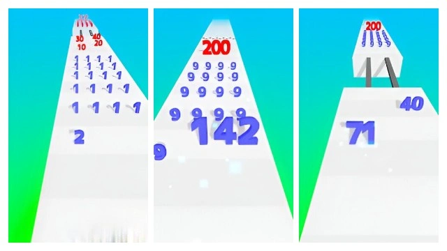 Make big numbers to reach the goal! You can move your numbers by swiping. You can absorb numbers on the stage that are smaller than yours when you hit them. But if you bump into a number larger than you, you lose the number and have to start over. Avoid electric saws, cross bridges, and jump ditches to reach the goal. At the goal, many walls are waiting for you. Break the walls one by one with big numbers and see the world beyond the goal!
