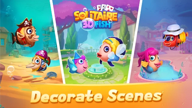 Solitaire 3D Fish is a BRAND-NEW & CREATIVE solitaire card game with UNIQUE 3D graphics and interfaces. It provides you the MOST vivid and lively 3D effects on the scenes and fish when you play this classic solitaire game (also known as Patience or Klondike game). You can collect dozens of different ocean fish (Clownfish, Blue Tang, Guinean Angelfish, Bannerfish, Powder Blue Tang, Azure Damselfish, Anglerfish) by the ""Gashapon Machine"" in the game. More fishes are coming in the next updates. HIGHLIGHTS - CREATIVE SOLITAIRE GAME Based on the classic solitaire (also known as Patience or Klondike), we've added a CREATIVE aquarium world with the unique ""Star Chest"" feature. - BEAUTIFUL UNDERSEA THEMES While enjoying the classic solitaire games, you will be totally immersed yourself in an amazing unique aquarium world with delicate undersea surroundings and creatures. - THOUSANDS OF CHALLENGES Together with Daily Challenges, there are over tens of thousands of classic solitaire challenges for you to play anytime and anywhere! - SURPRISING BOOSTERS & ANIMATIONS If you get stuck, you can use the ""Magic Wand"" for help to continue the game. And there are different kinds of animations when you win certain deals. HOW TO PLAY - Up to 10 top records - Klondike Solitaire Draw 1 card or 3 cards - Standard or Vegas Casino scoring - Single tap or drag&drop to move cards - Daily challenges with different levels - Auto-collect cards on completion - Feature to Undo moves - Feature to use Hints - Timer mode available - Left-handed mode available - Offline game! No wifi required