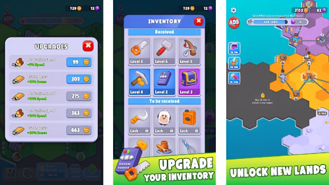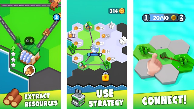 ► ARE YOU RESOURCEFUL ENOUGH TO BUILD A WHOLE WORLD? It’s all about supply chains in this fun idle world-building simulator game where the aim is to develop all of human civilization one hex at a time. Log, mine, craft and process raw materials to earn coins, then use them to upgrade your facilities and expand your profits so you can open up more land, unlocking entire continents and eventually the whole wide world. If you’re looking for a fun builder game with some complex strategy elements and satisfying challenges, then download States Builder now and start building your worldwide business empire. ◾ GET LOGGING: It all starts with wood – you cut trees to sell at market, then soon you’ll be able to afford a logging mill and a board factory. As you progress through the game, you’ll open up all sorts of other resources that can be processed in a variety of different ways. ◾ FEED THE CHAIN: Processed resources take longer to produce, but also make you more money. Use strategy to work out the best way to maximize your profits in the game by building varied supply chains, then watch the coins come pouring in. ◾ IMMEDIATE RETURNS: Spend profit on upgrading facilities on the map to increase your income in your current level. Each mine and processing facility has six levels, each of which increases productivity and profit. Adapt your strategy to make profits as fast as possible and move on to the next level of the game. ◾ INVEST IN THE FUTURE: You can also buy upgrades for resource production speed and greater profit. Upgrades apply to all facilities producing one type of material, and also carry across levels in the game, so you get to keep the benefits. ◾ RESEARCH AND DEVELOPMENT: Divert resources to equip and launch exploration balloons that will scout out new lands. Each time a balloon is launched in the game, you get coin and crystal bonuses. ◾ DISCOVER NEW LANDS: Once you’ve opened every hex in an area, you’ll need to save up coins to unlock the next area. Who knows what resources you’ll find when you discover new lands? ◾ WE HAVE LIFT OFF: When you’ve unlocked every hex on a continent, you’ll find a rocket. Fuel it up with resources to complete the level, then blast off to a new virgin continent with new resources to mine and craft, and start building all over again. ► BUILDER, INDUSTRIALIST, TYCOON From a small single settlement, through a developed town, to a fantastic industrial civilization with your own spaceship, in States Builder you get to build your way through human history and watch as your whole planet becomes a hive of industry. If you enjoy strategy games and would like the chance to build your own world, then install States Builder now.
