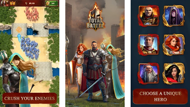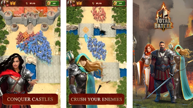 Gather heroes in a clan, farm a huge map full of treasures and monsters, promote your friends with titles, train a unique army, and beat foreign kingdoms! Total Battle is a war strategy game that will allow you to become immersed in a fantasy world of battles between ancient civilizations, magic kingdoms, and great empires. Join the legendary heroes of the mighty kingdoms and build your empire in the magical world of Total Battle! Enjoy this online strategy building game, and show off your castle defense skills and tactical war maneuvres. Command and conquer kingdoms and castles, occupy forts, and feel the rush of battle glory in this fantasy MMO RTS game. Join the company of legendary heroes who’ll defend their territory at all costs and fight against monsters, barbarians, wizards, elves, and other foes. Develop a base and establish a strong tower defense to win all the kings battles in this medieval strategy war game and become the Lord of all the Kingdoms! COME UP WITH YOUR OWN WAR TACTICS Your military base, which lies at the heart of your castle, needs to be developed. At first, you’ll have access to catapults and guardsmen, and later on, you’ll get even more units: titans, dragons, elementals, and other fantastic beasts will defend your stronghold, eliminate enemy troops, and conquer the world on your behalf. Summon the best captains to lead your warriors and achieve victory. Your skills as a kingdom-builder will determine the future, so do your best! Choose your strategy for managing the troops in your army—each unit has unique abilities for going to war against monsters and other players. EXPLORE AN OPEN WORLD Depending on your play style, you can find unique points of interest on the world map among deserts, forests, and mountain ranges. Hordes of enemies, abandoned gold mines, battle arenas, and ancient crypts filled with treasure are just waiting to be discovered! Not every strategy will win you a war! But with dedication, careful planning, and good management, you’ll build up a strong empire and raise a civilization! LEVEL UP YOUR EPIC HEROES Your army isn’t the only thing that plays a crucial role in a winning strategy. Your heroes and captains have various skills for dealing with different situations. Craft equipment and level up your heroes just like in the best MMORPGs. Put your heroes at the head of your legion of troops, earn XP, and win wars! CALL ON YOUR DRAGON Accept the challenge of epic monsters and raise your dragon. Give him a name and summon him to fight against your most dangerous enemies. The strength of your dragon will be indispensable when besieging mighty magical citadels. ONLINE BATTLES AND CLANS In Total Battle, clans with members from all over the world fight for battle glory. Join a clan of like-minded people, play with friends, and achieve your goals together in this online strategy game. Capture territory, climb to the top of the war rankings, and enlist the support of thousands of allies to help you achieve world domination. Features of Total Battle: - An MMO 4X real-time strategy game with PvE and PvP modes. - A massive open world with hundreds of kingdoms and millions of lords' castles. - A medieval fantasy setting. - Dozens of legendary heroes and captains from different civilizations. - An RPG-style character leveling system. - Fantastic tame beasts led by your mighty dragon at the head. - A clan system and the ability to chat with other players. - Dozens of types of magic enemies of different levels. - Regular competitions and challenges. Total Battle is a multiplayer war game featuring various historical epochs: from ancient times to medieval and then to the age of discovery. Join the online battle strategy game, build an empire, and win!