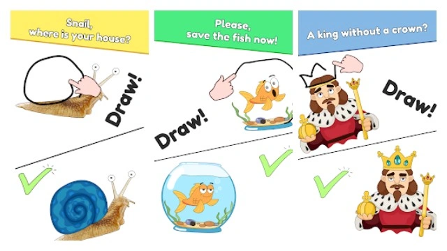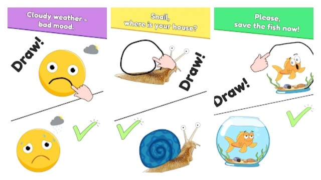► Can you see what’s missing? What a pretty picture, but don’t you get the nagging feeling that something’s not quite right? What’s the final touch that will make the image complete? Engage your brain, your imagination and your artistic talents to identify the missing element and add it to the drawing in this delightful puzzle game that will get you thinking and make you smile time and time again. ► Exercise every part of your brain • Ingenious puzzles that require logical, lateral and creative thinking to solve. Engage every part of your brain to work out what’s missing from the picture, then use your artistic skills to draw that one part in. • Clear, colorful graphics and calm, happy music make Draw One Part a pleasure to play, creating a tranquil and fun environment where puzzle solving is as relaxing as its entertaining. • Intelligent game mechanics and carefully conceived puzzles ensure a smooth and satisfying playing experience. If you’ve got the right idea, Draw One Part will recognize your intentions even when your artistic skills aren’t quite up to the task. •Satisfaction guaranteed – the answer might not be obvious, but when you finally find it you’ll understand the logic behind it. And your discovery could change the original image in any number of amusing and unexpected ways. • Dozens of different situations and over 200 missing parts make for almost endless puzzle variation, with solutions that are satisfying, intriguing and humorous in equal measure. • Try, try and try again. There’s no penalty for failure in Draw One Part. If you can’t find the right answer first time, keep on thinking and keep on experimenting until you hit on the solution. • If you’re really stuck, you can always ask for a hint. The imaginative solutions in Draw One Part are guaranteed to satisfy even when you can’t see them for yourself. ► Who knew gap filling could be so much fun? Looking for an original and entertaining puzzle solving game that’s genuinely challenging and rewards lateral thinking but won’t have you throwing your phone across the room in frustration? Draw One Part will bend your brain, test your drawing skills, and give your logic a real workout without ever driving you absolutely crazy. ► Download Draw One Part now and get both sides of your brain working in perfect harmony to solve endless beautiful, satisfying puzzles with real creative flair.
